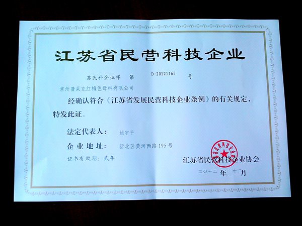 2012年12月經相關部門評審,我司獲得“江蘇省民營科技企業”稱號