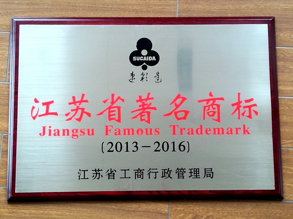 我司獲得“江蘇省有名商標”證書和牌匾